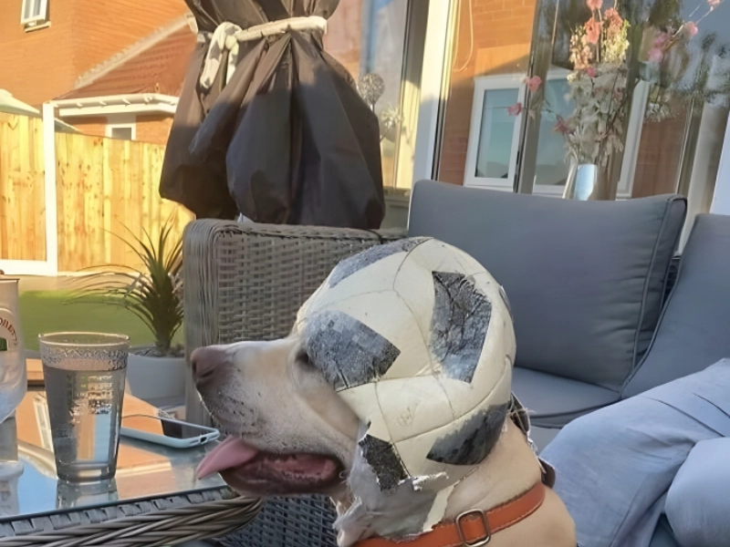 Zion is the doggo shown here; he is clearly looking really proud of himself for a good reason. The initial poster said Zion stole their nephew’s ball. He then tore it to bits and is currently sporting it as a sunhat, or as the original poster describes: ‘wearing it like he’s in Silence of the Lambs.’ Phahaha – that made us giggle!