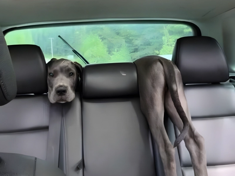 Oh darling! Two immediately come to me: “Why”? and ‘how?Surely this cannot be a really pleasant posture for this doggo. Is he trapped, in your opinion? We’re not sure whether he is. He doesn’t seem that unhappy after all. Quite the reverse—he seems absolutely calm! It looks like a magic show how this dog slithered around the headrests so that his body is hidden!