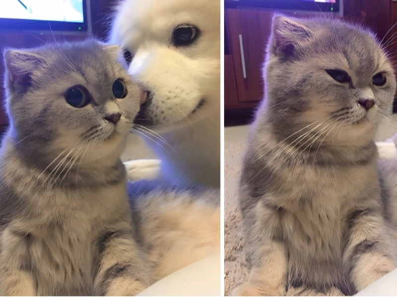 This scene also emphasises the intricate social relationships in multi-pet homes, where animals grow to have their own distinct means of bonding and communication. The cat’s dramatic reaction reminds us that, frequently in ways that reflect human social relationships, our pets are able to convey a great spectrum of emotions and responses.