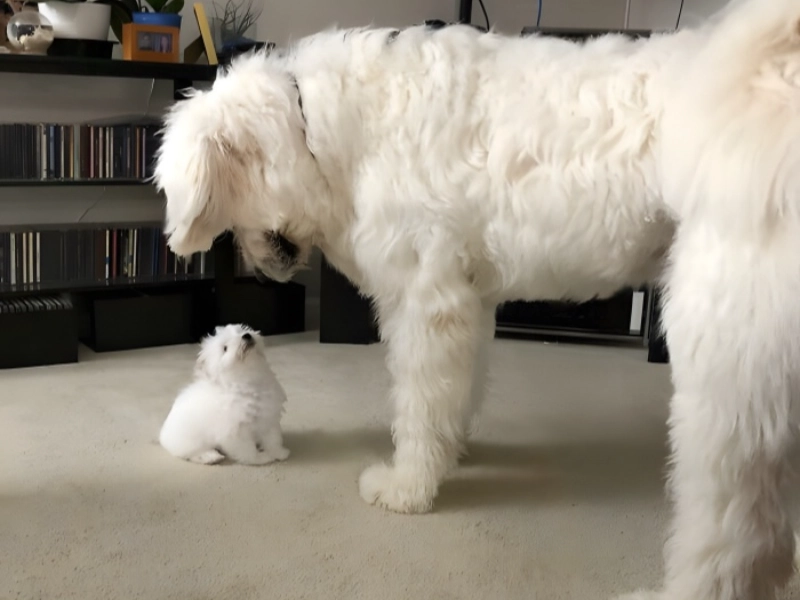 Rather than being a drawback, this size difference usually results in some of the most charming relationships in multi-dog homes, where the larger dog usually takes a protective, caring position towards their younger sister.