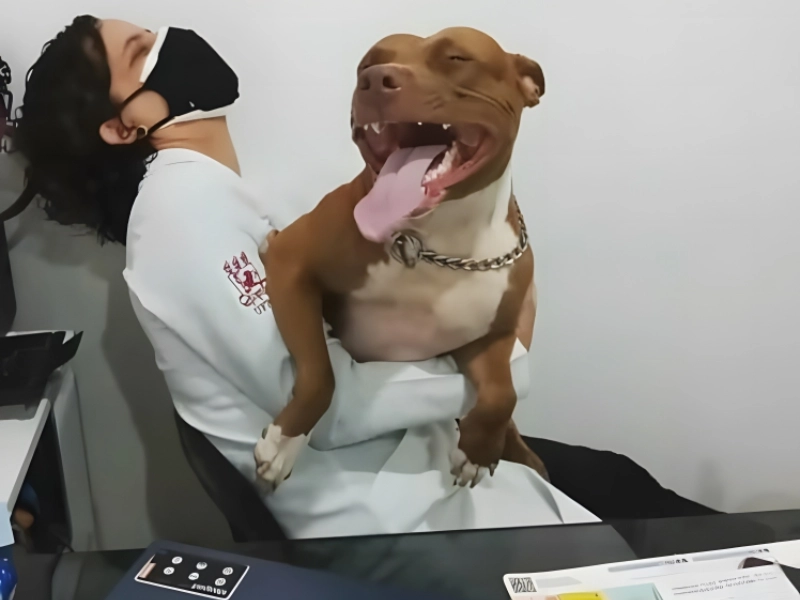 Though opinions on whether or not dogs can laugh vary, the individual who captured this picture appears sure that this pit bull is laughing alongside her veterinarian sister. Though we can’t be sure whether they were laughing, this pooch is obviously very much in her comfort zone. This picture attempts to refute everyone who thinks pit bulls are a dangerous canine breed, despite their negative image.