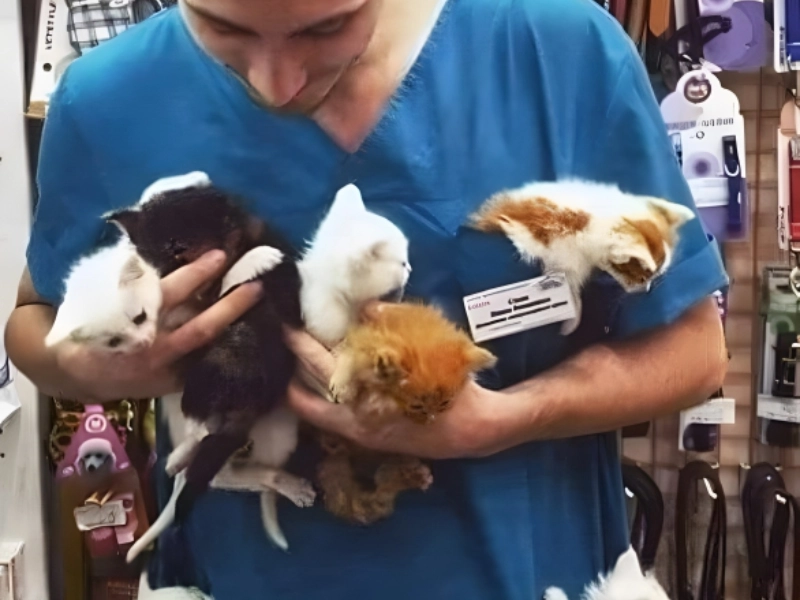 Being a vet who comes across fluff balls like this must be difficult not to appreciate your daily work. Though they would be lovely, he most surely had hands full trying to hold them all at once. Fortunately for him, his pockets proved to be a substitute for a cat-holder. On that day with so many kittens to care for, the clinic was most likely a little disorganised, but ultimately it’s well worth it.