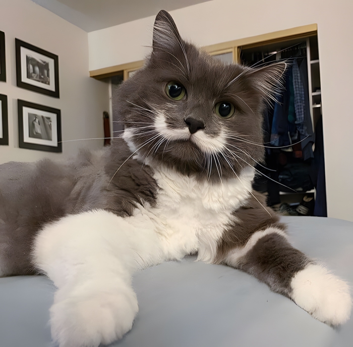 There’s one other cat on this list with a mustache for all of you cat lovers, but this might just be our favorite. For whatever reason, this cat just looks like a perfect gentleman. It might be this cat’s fluffy coat of hair or its grey coloration, but whatever the reason, the mustache just fits this cat perfectly. We could picture this cat sitting down in a fancy restaurant to enjoy an expensive glass of wine.