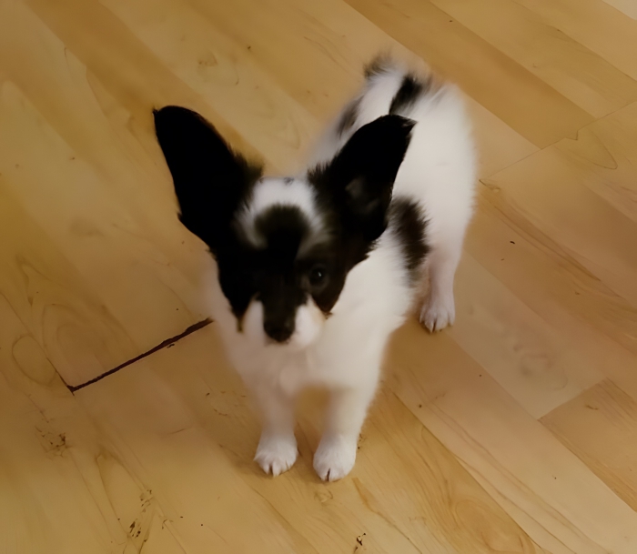 A Puppy With A Bat Pattern On Its Head