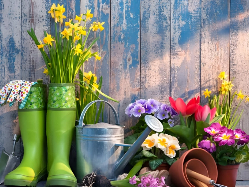 Materials required: dirt, plants, and old wellies