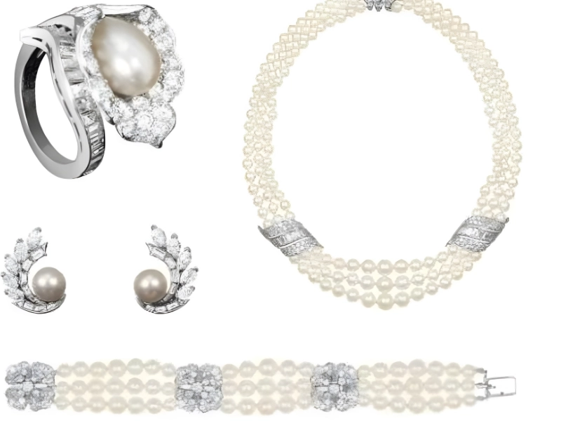 Van Cleef sent Prince Rainier a sample of the pearl and diamond parure that the jeweler handed her. Because Rainier liked the jewels so much, he purchased the full set from the New York jeweler’s boutique. In addition to the parure, the set comprised earrings, a tiny bracelet, and a necklace made of cultured pearls.