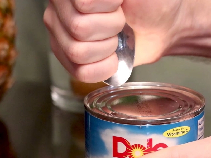 There should be a hole created if you continuously run the spoon’s end along the can’s top. After completing that, keep enlarging the cut until the can opens. This hack may not be the simplest in the world, but it will work and is safer than using a knife. Just use caution to peel back the top.