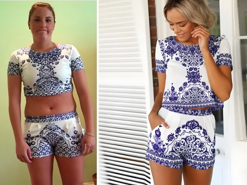 This ensemble appears to be well-made, adorable, and comfortable enough to keep you cool throughout the summer. What more could you ask for in a combo of shorts and t-shirt? Given how amazing the model is wearing it, it must be what arrived, right?