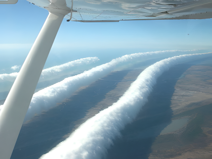 Gravity waves in the atmosphere must be formed under particular conditions to align and produce a delicate equilibrium allowing these amazing occurrences. One of the most often occurring situations for the generation of gravity waves is steady air over steep terrain. The topography’s force upward of the air generates a disturbance capable of spreading as a gravity wave. Under the appropriate conditions, this phenomena—known as mountain wave or lee wave—can span hundreds of kilometres downwind of the mountain range and produce a sequence of standing waves in the atmosphere that can last hours or even days.