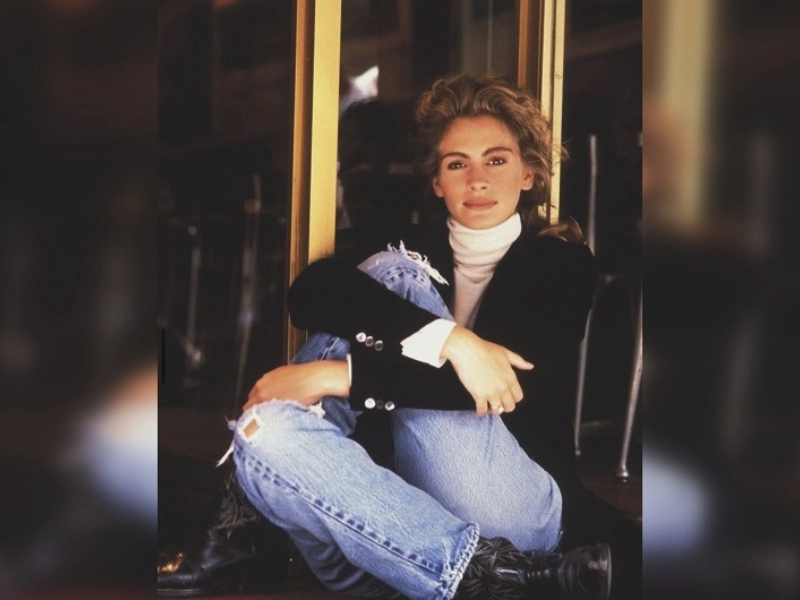 A atriz se destacou em um dos eventos de 1998 ao vestir-se ousadamente com um suéter folgado e aconchegante e sandálias sem sapatos.