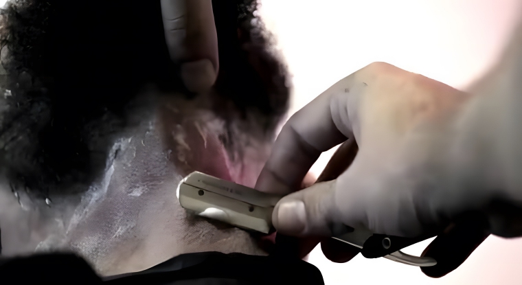 The team started cutting away stray hairs to give him a perfect jawline and then they shaved around his neck. Now that his hair and face was done, one last thing that needed to be done was picking the perfect wardrobe for him.