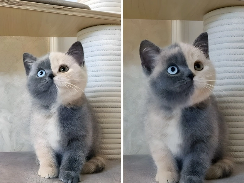 We’re a little envious of the incredibly fortunate pet owner that gets to see this adorable kitten every day. When the owner uploaded this cute cat picture online, people couldn’t stop commenting on it. Although we’ve seen animals with bicolored eyes before, this pet is unlike any we’ve ever seen. Its fur appears to be torn in half and to have been reversed past its neck.