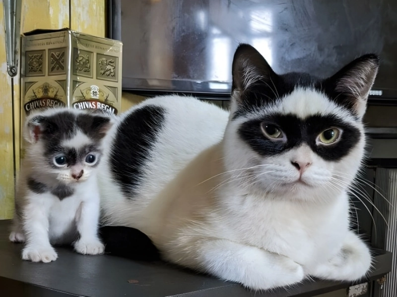 We can only presume that these two cats are related because this one is very nice. This is due to the fact that they both have an almost mask-like black patch surrounding their eyes. White fur surrounds that patch. It gives them the appearance that they are getting set to go out and battle crime or go to some posh event. It’s kind of hilarious to consider either option.