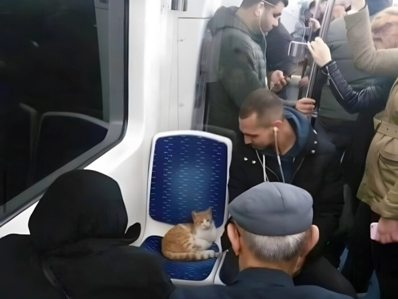 That chair has to feel like a bed. Not even does it seem like it worries about the abundance of people around. It simply wants to slumber going forward. The situation gains some comedy from the difference between the standing passengers and the absolutely calm cat. This picture shows a lovely instance of urban coexistence when even public transit becomes a shared area between people and their feline neighbours. Surrounded by strangers, the cat’s total ease in this public space represents a civilisation in which animals are valued and welcomed as part of the community.