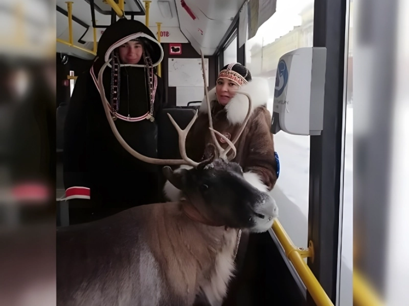 deer on the bus? This startling picture most likely shows an absolutely unexpected scenario of animals using public transport. Most likely, the picture portrays a deer, an animal usually connected with rural areas and forests, standing in the aisle of a city bus. The wild animal in this man-made, metropolitan environment makes an instant visual impression. With its big eyes reflecting the bus’s interior lights, the deer might seem perplexed or intrigued. With some probably startled, others delighted, and maybe a few seeming unaffected by the strange commuter, passengers’ responses would add to the hilarity and surrealism of the event. If one could see the bus driver’s countenance, it would be total confusion. This picture reminds me humorously of the surprising junction of urban life with the surroundings. It might start conversations about urban growth, animal relocation, or just honor those rare, magical events when something very remarkable disturbs the everyday flow of existence. The picture catches an apparently ridiculous, funny, and provocative moment at once.
