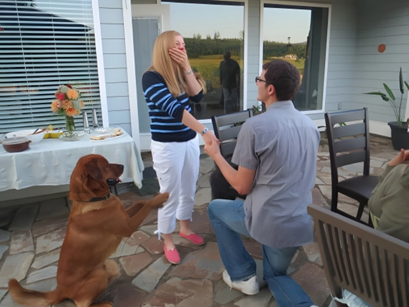 Is the dog behaving as it ought to? This man proposed to his girlfriend, and their cat is also pleading with her to wed him. We have only seen better cuts than this. Anybody would have agreed to dog for his benign suggestion. The man appears to have taught his furry pet really effectively about this kind of thing. He is thus attempting too much. Man’s best friend therefore just evolved as his best wingman.
