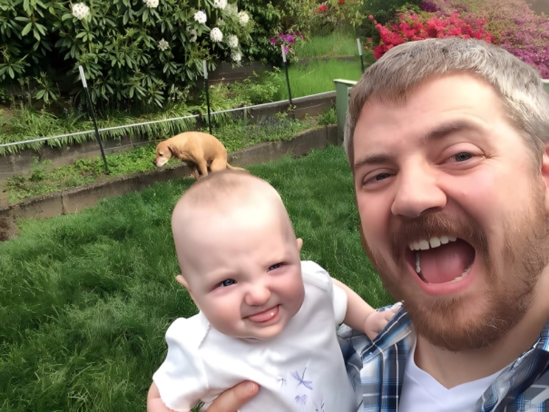 Has anyone ever seen such a bad viewpoint that gives the image of the dog pooping on the head of the poor child? It clashes really poorly with the tranquilly of a lovely English country garden. Though it’s also funny, the picture was first really adorable. Although most of the time it’s hard to say that a pooping dog enhances a shot, the matter is slightly different when it seems like a small dog is sitting on top of a newborn’s head. Hey, that tiny dog just left a massive baby crap.