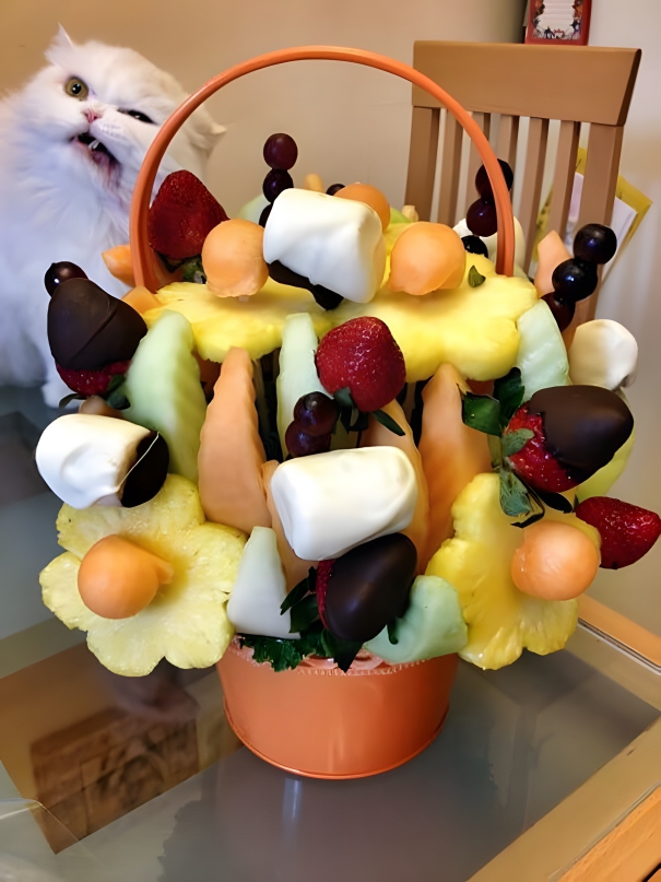 Now, this must be Food photobombing a cat shot! It looks like the cat is not a big fan of fruits of any kind in the house. The cat’s facial expressions are indeed priceless. We all must be feeling fruity after watching this beautiful basket, but it looks like it got upstaged by a scowling cat. So, maybe the cat plans to rip the fruit basket apart whenever the human is busy somewhere else.