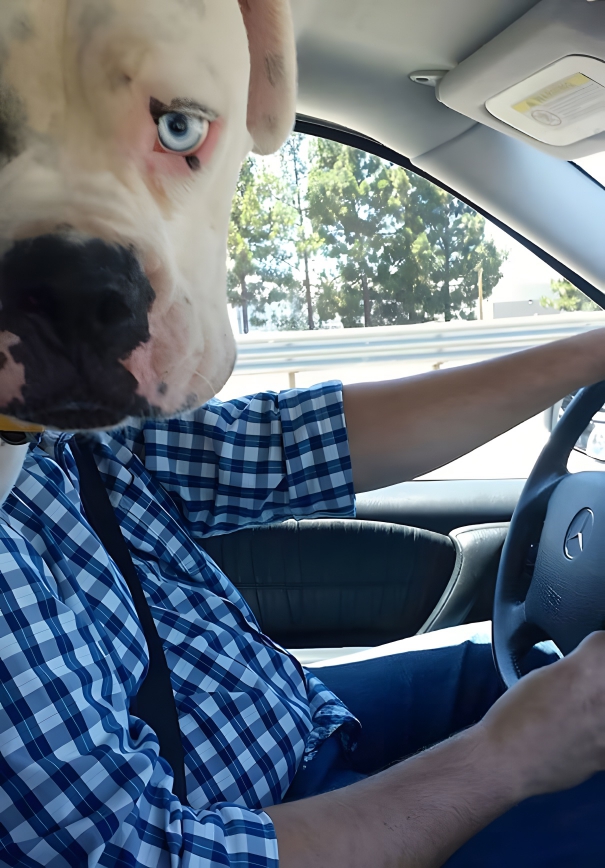 It looks like a lucky human whose dog drove him to the office, or maybe the dog is trying to learn how to drive. We are wondering what other skills this dog has! His looks are on point, and even the shirt is matching his eye color. And it really doesn’t get much more human-like than this. After all, this is what our face looks like when we get stuck in traffic.