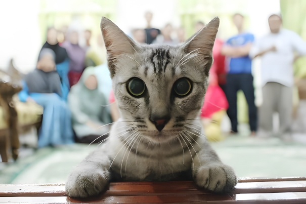 It’s a family picture, but according to the cat, it’s the only important family member. It’s the best family picture ever because the camera focused only on the cat. It seems like the people actually photobombed this cute little kitty’s selfie. Well, it’s a Paw-trait of a Cat, filling in for the guest of honor. We prefer to watch cats instead of humans. To the cat, humans are just a backdrop anyways. Or perhaps they are too much for a family portrait, so the kitty decided to crash the picture.