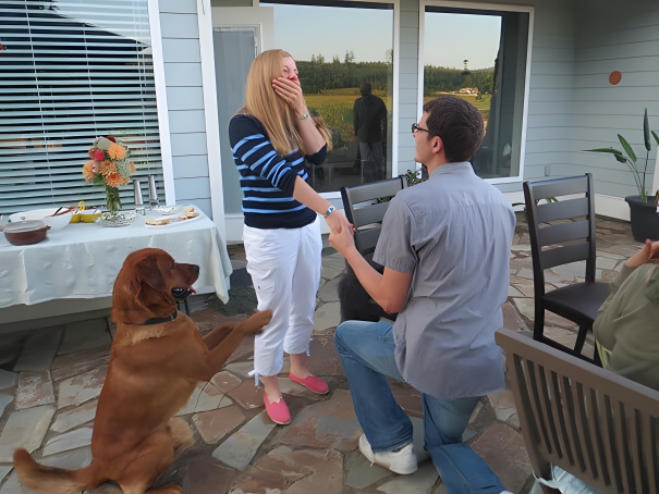 Is the dog showing how it should be done? This man proposed to his girlfriend and their pet is also begging her to marry him. That’s the cutest thing we have ever seen. Anybody would have said yes to doggy for his innocent proposal. It seems like the guy has taught his furry friend pretty well about this kind of stuff. That’s why he’s trying too hard. So, man’s best friend just became man’s best wingman.
