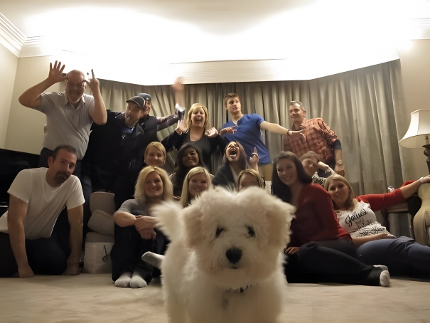 But honestly speaking, it looks more like those family members are photobombing the dog’s lovely picture. We also loved that everyone is blurred except the dog.
