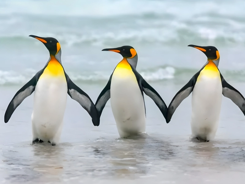 It shows three King Penguins walking idly along the beach while clutching each other’s hands—or, more accurately, their wings. The image was chosen for the 2023 Comedy Wildlife collection because of the camaraderie it displays, which demonstrates how similar the animal species and the human world are!