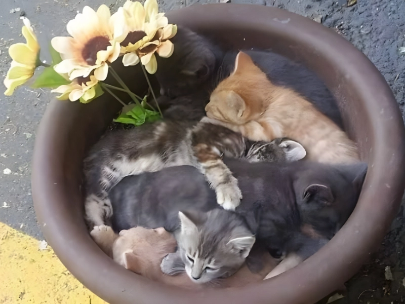 If you are a cat owner, you probably had the scariest moment of your life when your cat suddenly appeared out of nowhere and began to yawn in the most unexpected locations. This image presents a fairly humorous image of a cat pot—one that has numerous cats curled up inside—and illustrates a similar scenario.