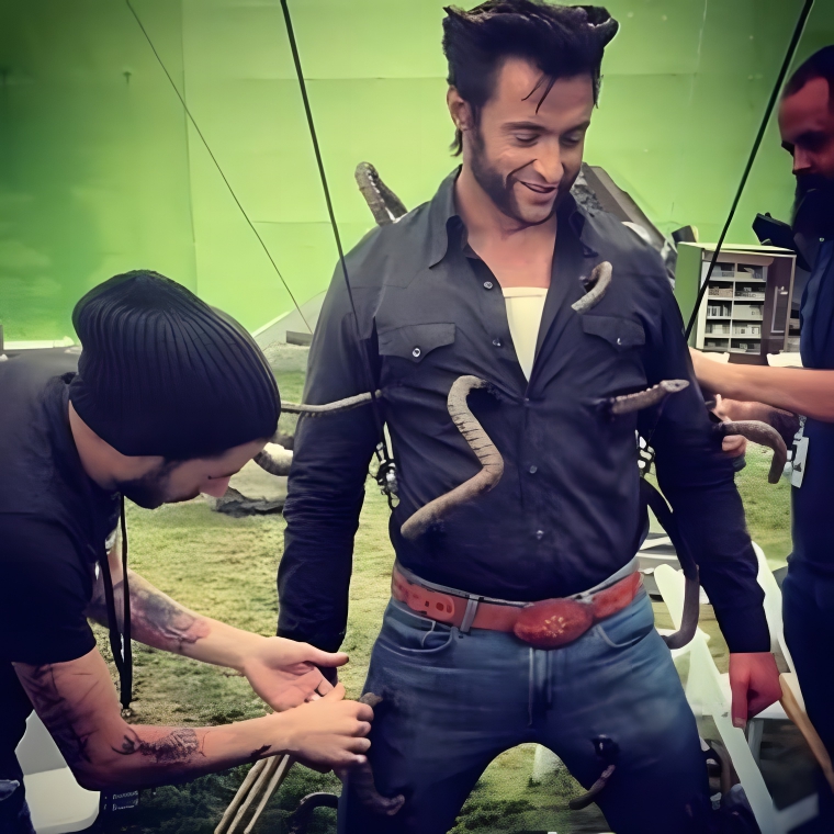 For balance, a couple of wires were attached to her to keep her safe in case she falls off this poor fellow (I hope he was paid enough for this). I am looking forward to “part three” of this movie by the way.