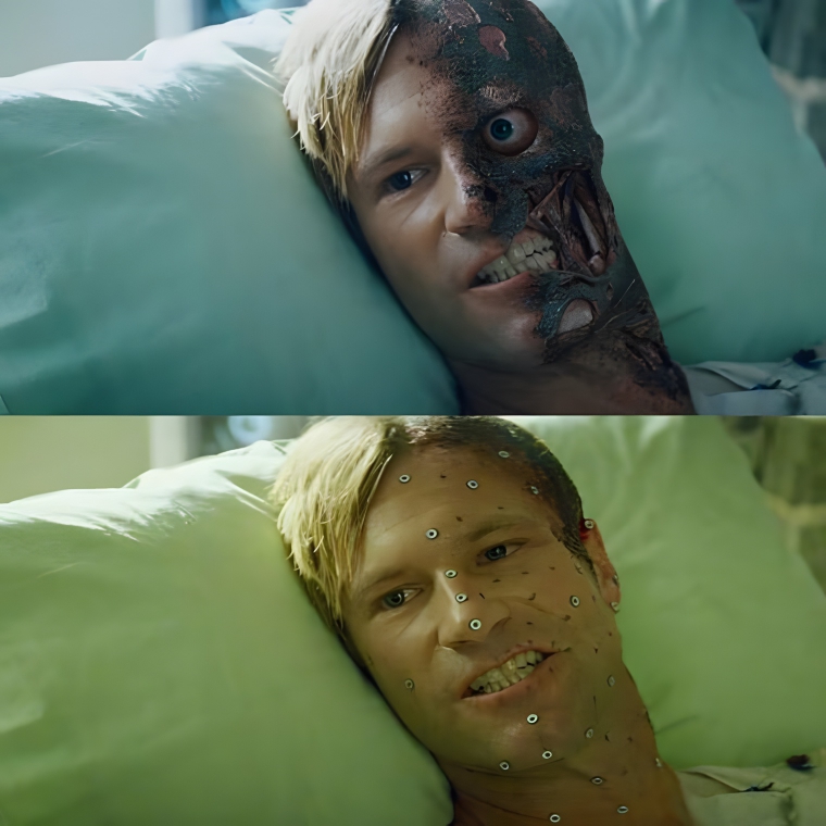 Throw in some prosthetics in the mix and he won’t even need special effect, well-done Eckhart.