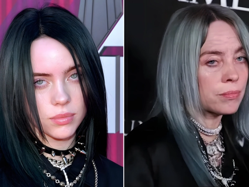 In 2019, the FaceApp challenge caused celebrities to appear decades younger than they actually were. Following suit, Billie Eilish gave us a glimpse of what she would look like in her sixties. She did, of course, retain her green hair in the photo (a hairstyle she would not give up until her 2021 blond bombshell look on the Vogue cover).