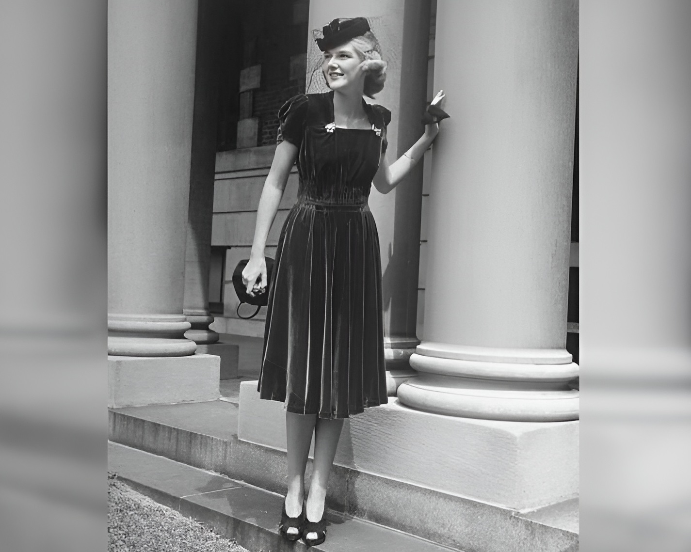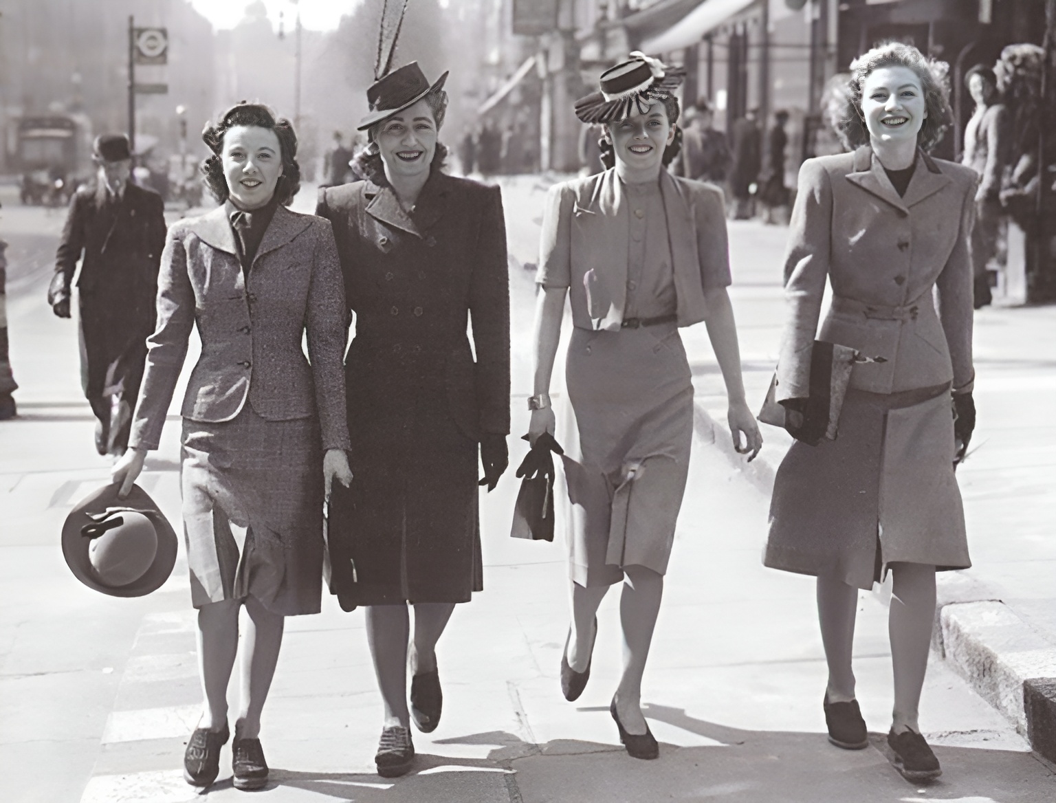 During the war, there was a constant shortage of fabrics, so skirt lengths became shorter every year.