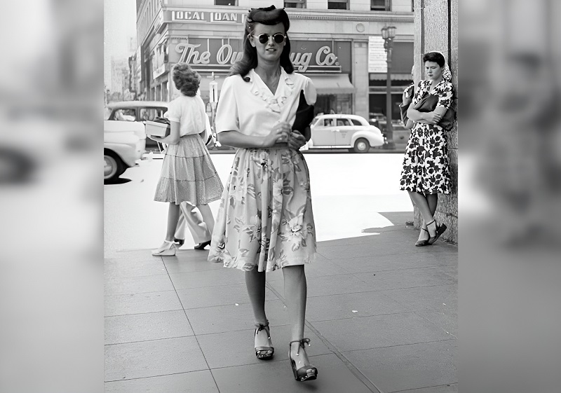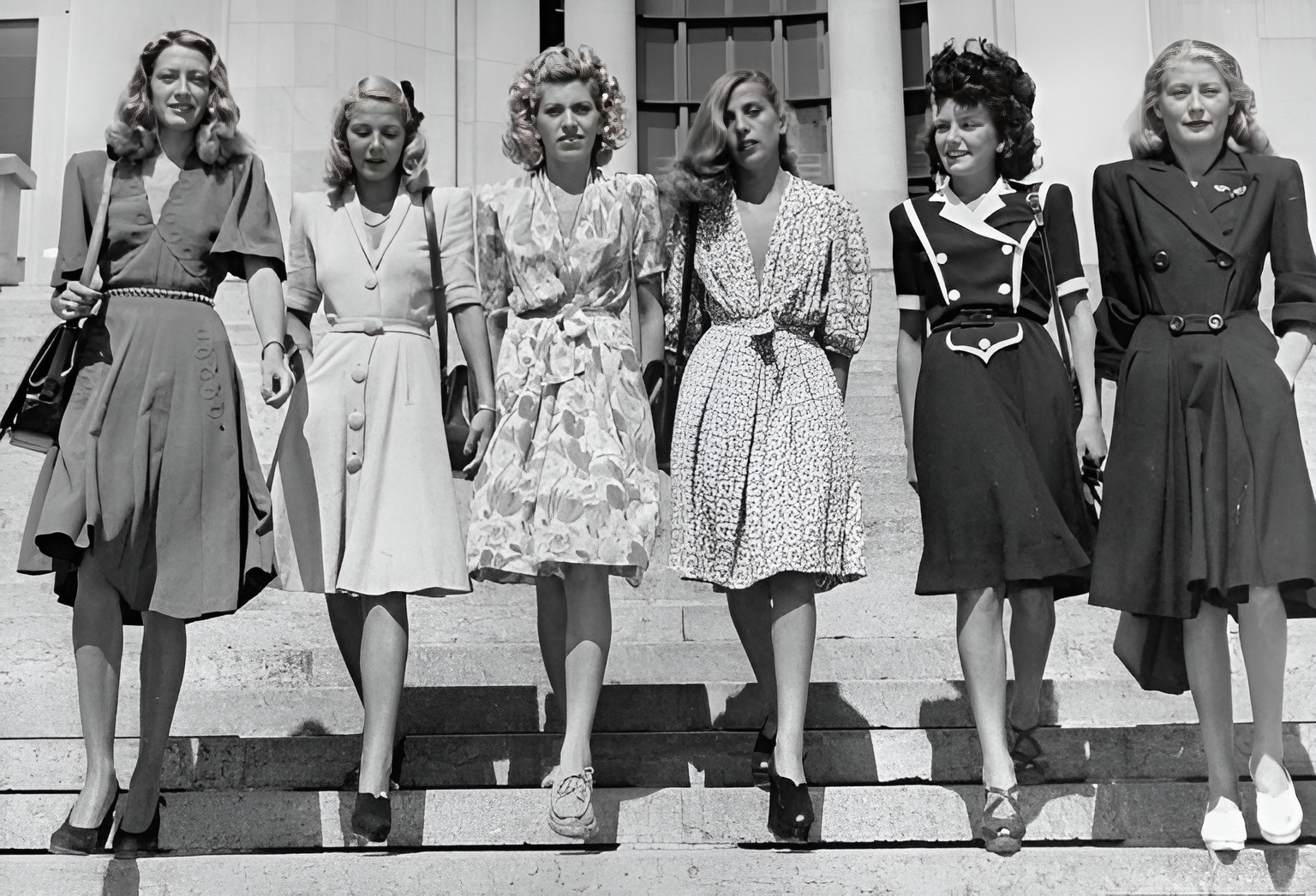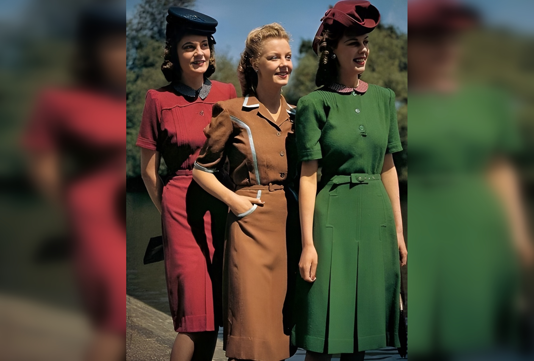 In the 1940s, the dominant fashion trend was layered long skirts.