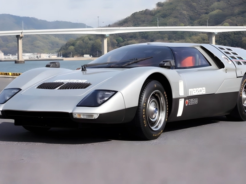 Another window into the past was the Mazda RX-500 concept automobile from 1970. This two-door coupe with swiveling butterfly doors was a mid-engine vehicle. The original RX-500 was a concept vehicle meant to encourage driving safety. It included features like back lights that changed color to indicate different information rather than just turning on when the vehicle was braking.