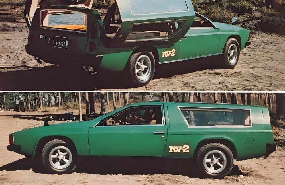The year is 1974, hippies are in full bloom and the camper van was desired by all. This two-door Toyota RV-2 made some big claims, saying that it could sleep six people. The back of the care opened up into a tent, which looked rather unhappy in the pictures when opened.