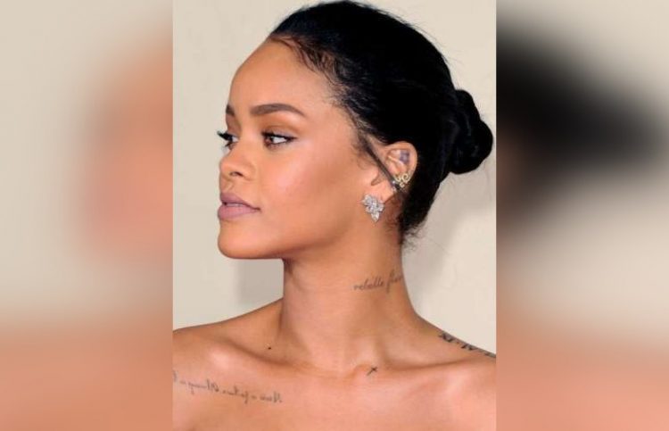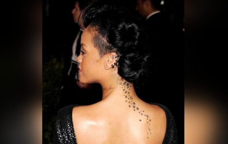Among the singer’s tattoos is a beautiful scattering of stars on her back from her neck. Rihanna has a small music key and note hidden on her right leg.