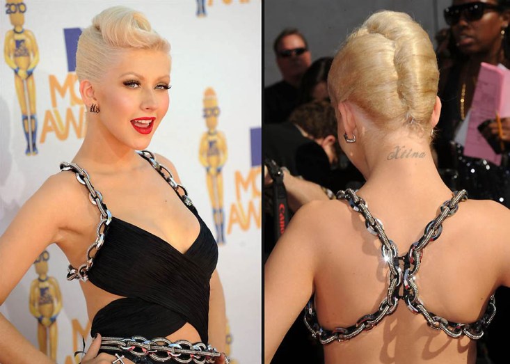 On the delicate neck of the singer, behind, the inscription Xtina is visible, which is her nickname. Aguilera has a total of five tattoos.