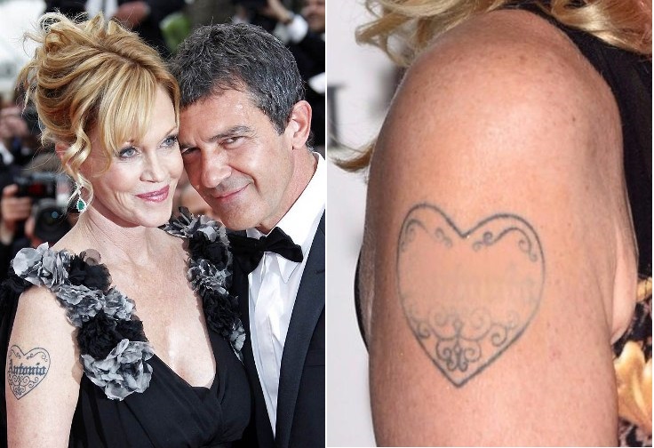 While still married to Banderas, Melanie Griffith had a tattoo of a heart and her lover’s name on her arm. After 18 years of marriage and their separation, the actress decided to have the tattoo removed completely.