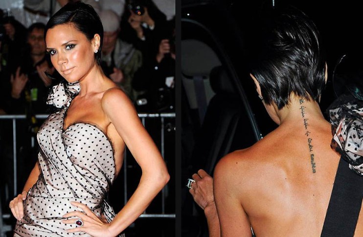 Victoria Beckham has a biblical quote in Hebrew on the back of her neck that reads “I am my beloved’s, and my beloved is mine.”