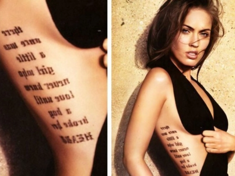 Megan Fox enjoys flaunting her body art. She has a quotation from philosophy permanently inked on her side.