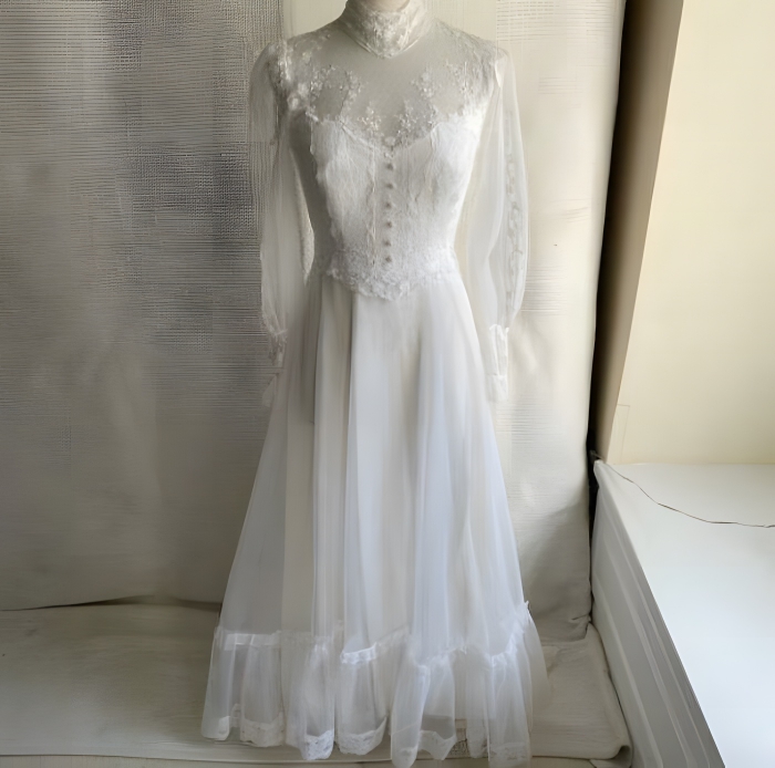 Most thrift stores have racks upon racks of old clothes for sale. And while many of these clothes are regular people’s cast-offs, sometimes there’s a rose amongst the thorns – and it’s safe to say that this dress is definitely a rose. The person who spotted this was instantly captivated by the vintage 70s boho prairie lace dress, and knew they had to buy it even though it wouldn’t fit anyone in their household.