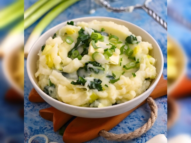 A traditional Irish cuisine, it consists of mashing potatoes that have been boiled and combining them with cooked cabbage or kale, butter, milk, and occasionally leeks or onions. In Ireland, this hearty and tasty side dish is frequently served on occasions like St. Patrick’s Day.