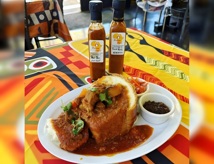 Is a South African fast food dish that consists of a hollowed-out loaf of bread filled with curry, typically made with chicken or lamb, and is a popular and flavorful street food.