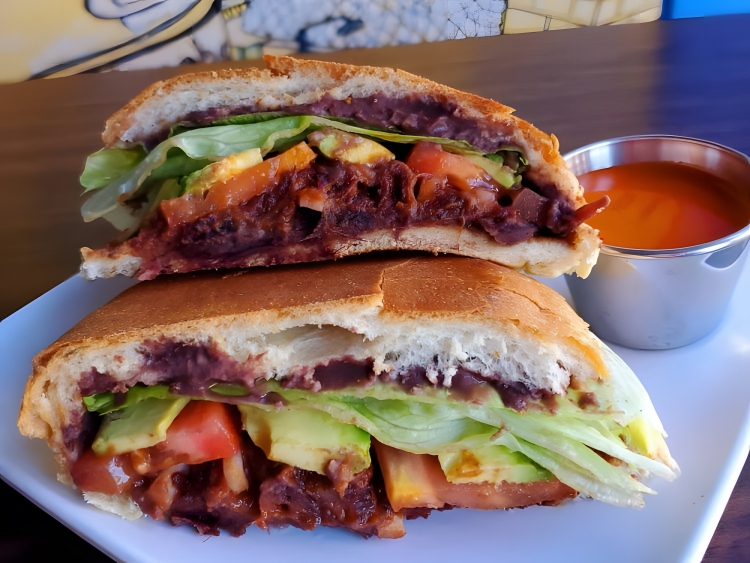 Mexican sandwiches typically made with a type of soft bread roll called a telera or bolillo. The roll is filled with various ingredients, including meats such as grilled chicken or beef, beans, cheese, avocado, lettuce, and salsa.