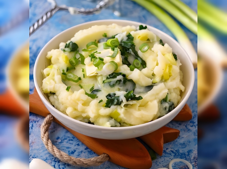 Traditional Irish dish made by mashing boiled potatoes and mixing them with cooked kale or cabbage, along with butter, milk, and sometimes scallions or leeks. This comforting and flavorful side dish is commonly served during holidays like St. Patrick’s Day in Ireland.