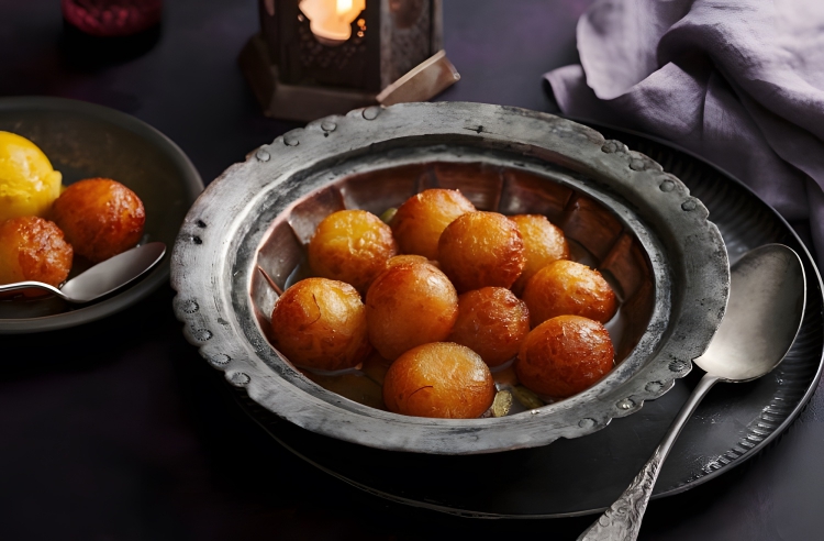 Popular Indian dessert made from deep-fried dough balls, known as “jamuns,” which are then soaked in a sugar syrup flavored with cardamom, rosewater, or saffron.