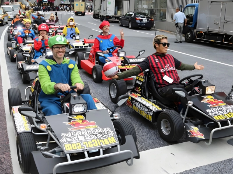 In the past, when real-life Mario Karting existed in Tokyo, fans of the video game could indulge their passion for the game to the fullest. For devoted Mario Kart fans, Street Kart—originally named MariCar—led trips across the city. These travelers drove go-karts through the streets of Tokyo, seeing well-known sites like Shibuya, Tokyo Tower, and Akihabara, while dressing up as Mario, Yoshi, and Luigi.