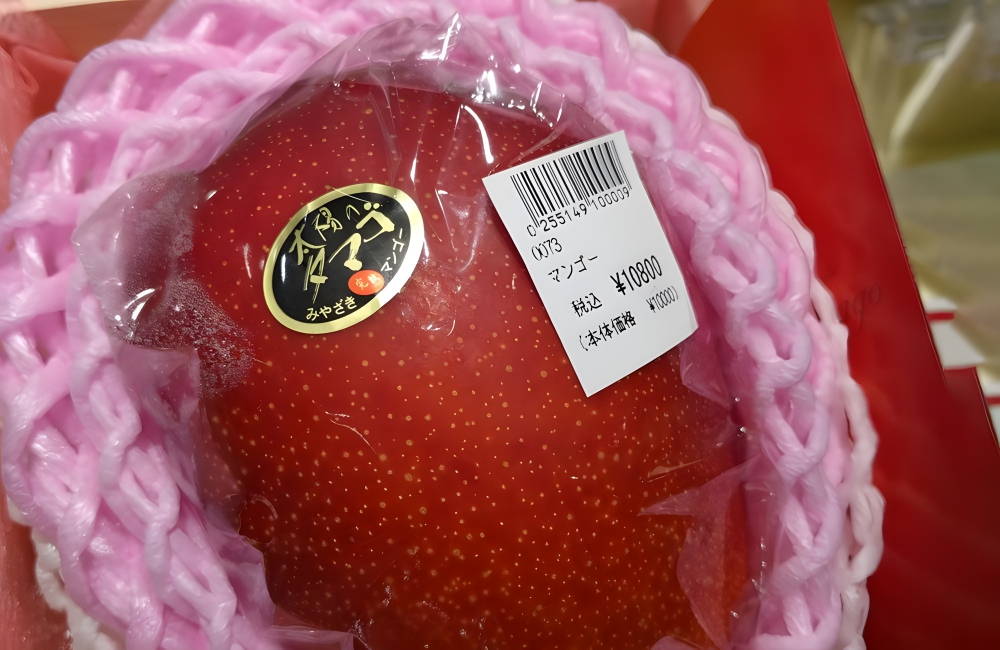 Mangoes are already pretty expensive, as you can see from the photo. Far from $1.50, that mango costs around $98. The reason these mangoes are so expensive is because they are extra sweet and extra tasty. They undergo strict quality control and growing conditions to make sure they have a 15% sugar content, deep red color, and heavy weight. The rarity of these mangoes drives up the price, making them a delicacy in Japan.
