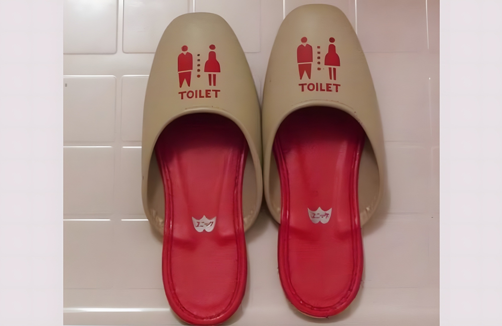 Purity and cleanliness are two values that are very important in Japanese culture. Slippers are often worn inside the house instead of shoes, and there are even special slippers to be worn solely in the bathroom. Japanese toilet slippers are placed at the entrance of the bathroom.