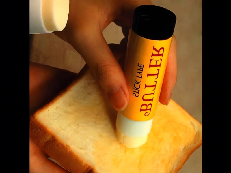Japan goes above and beyond the butter grater in its efforts to eliminate the need for spreading knives. And a stick of butter, though not in the way you might expect. Like a glue stick, butter comes in a tube that you can push across the surface of toast.